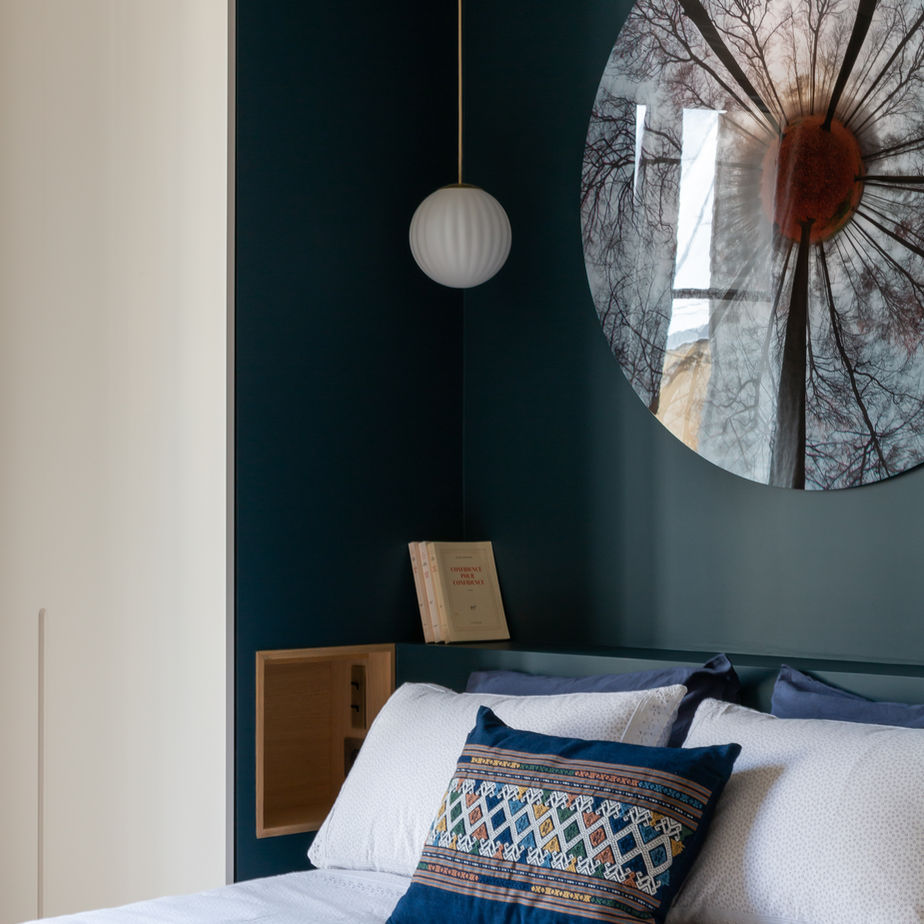 nombreuses œuvres d'art contemporain qui habillent les murs de cet appartement Haussmannien.